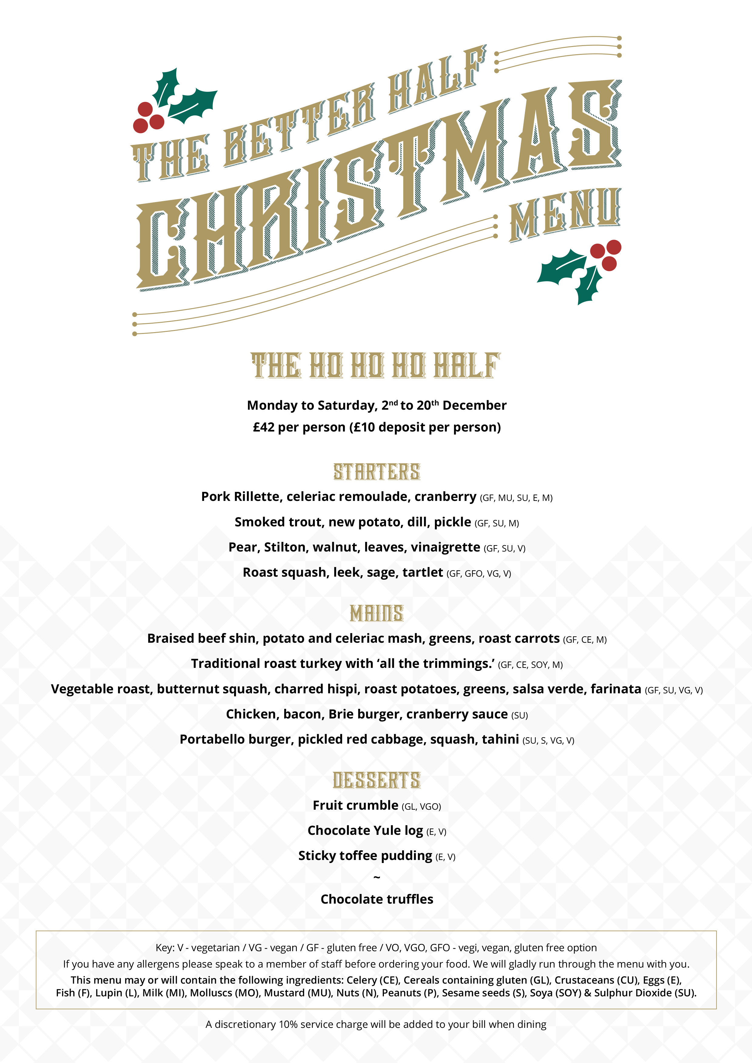 It’s that time of year again. Book your Christmas meal at The Better Half throughout December.